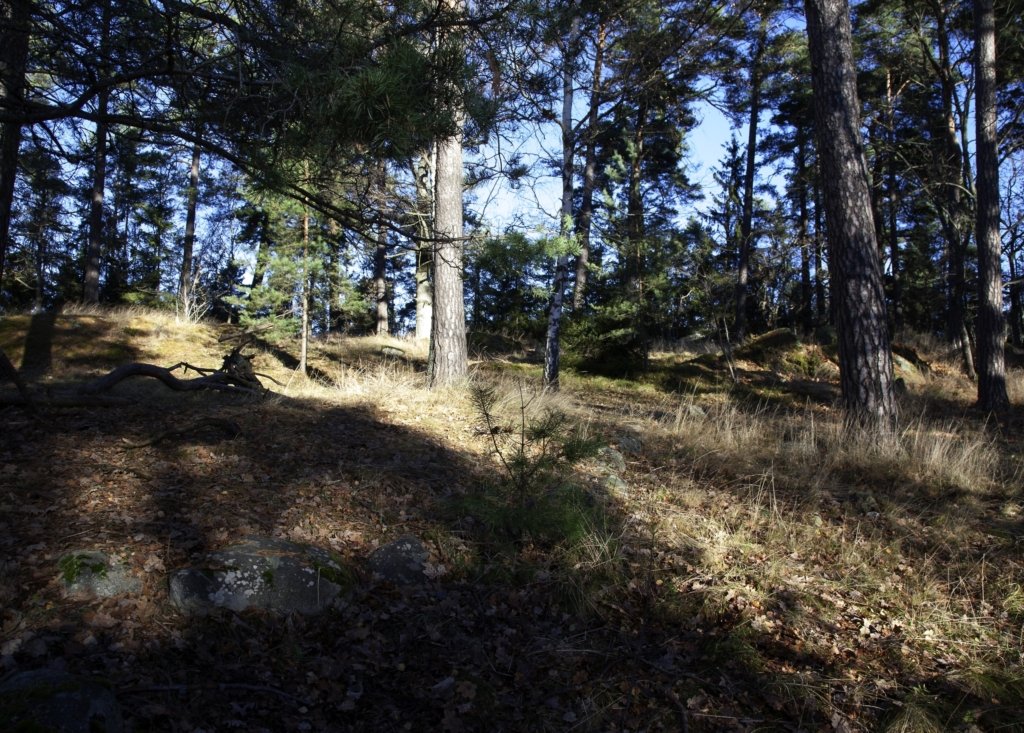 … om du var här då för tusen år sen när järnåldersmänniskorna begravde sina döda här i skogsgläntan. Gården med boningshus och bodar skulle du se där borta till vänster. Du kanske går dit för att hälsa på.