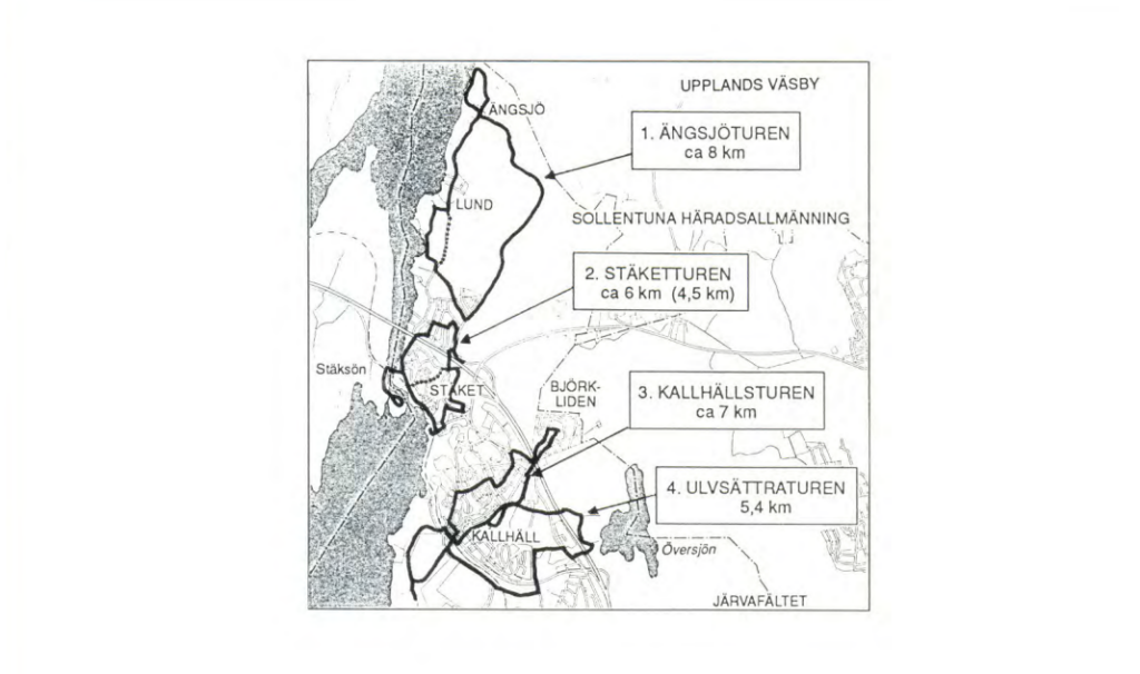 Kartor och beskrivningar av de olika platserna finns samlade i en broschyr på Järfälla kommuns hemsida. Kulturstigar Kallhäll Stäket. Nedan kan du läsa kort om varje tur.