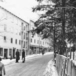 På bilden ser du området Järla Sjö i Nacka. Idag finns här lägenheter, butiker och kontor men när fotot togs så var det här ett industriområde.