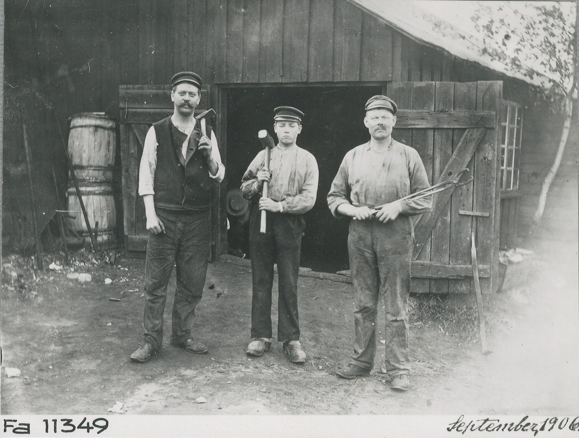 Anton, Sven och August arbetade i smedjan år 1906.