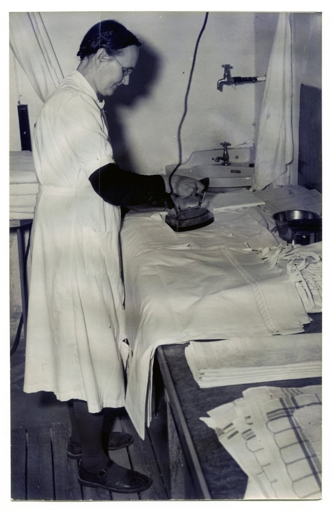 Arbete på övervåningen i den gamla oljefabriken dit strumpfabriken flyttade 1939.