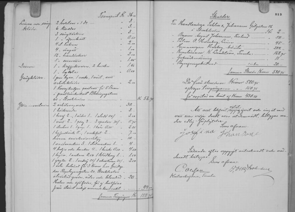 - Vilken släkting har undertecknat bouppteckningen? (makan Josefina Johansson)